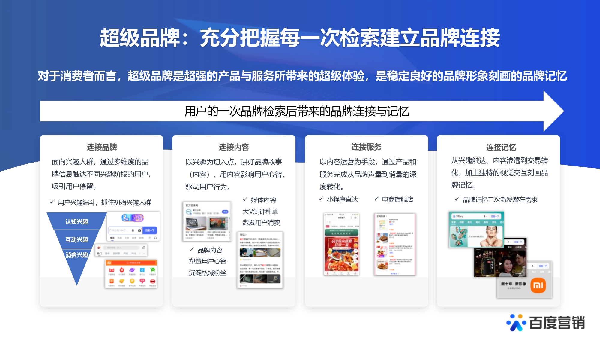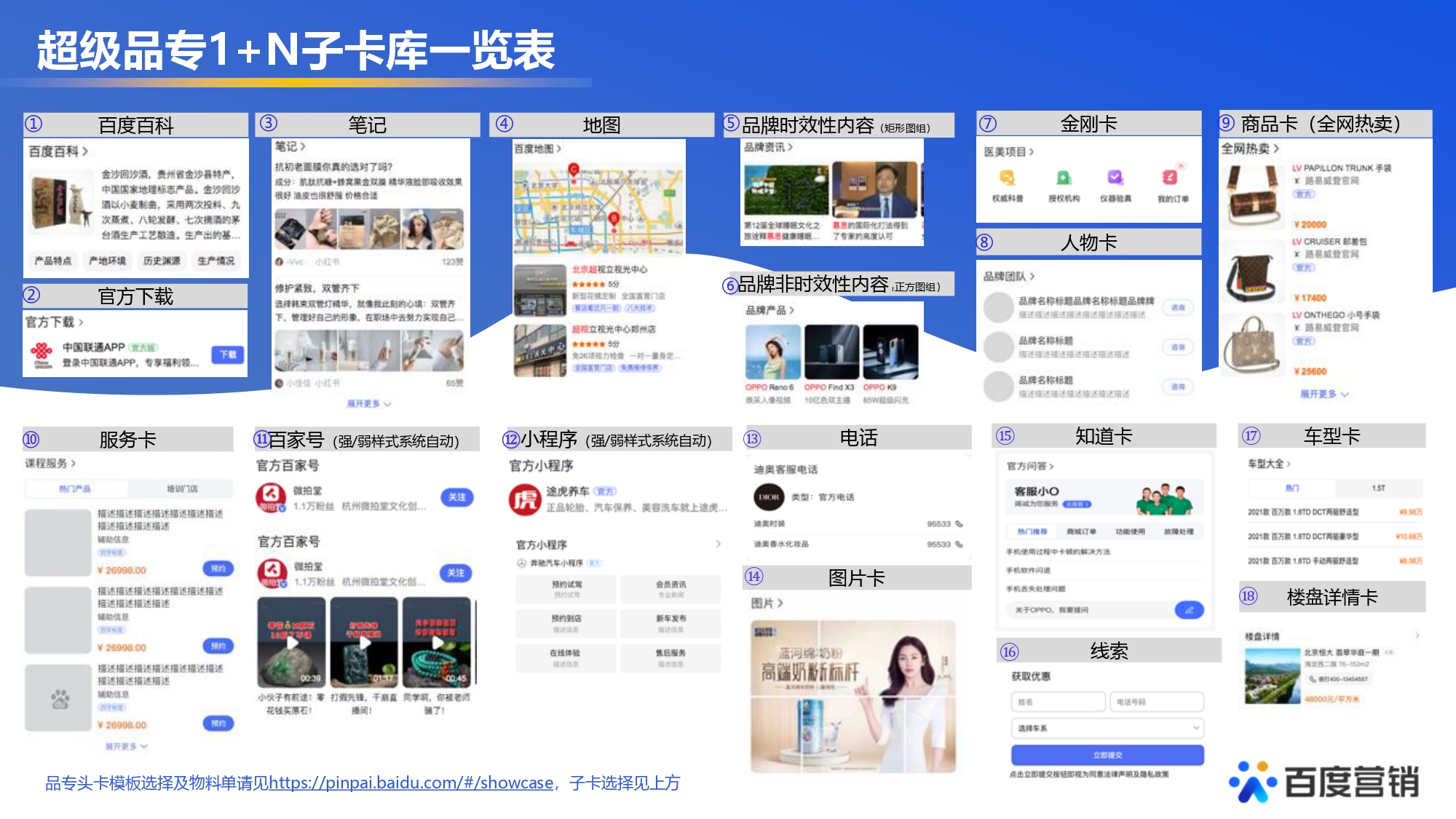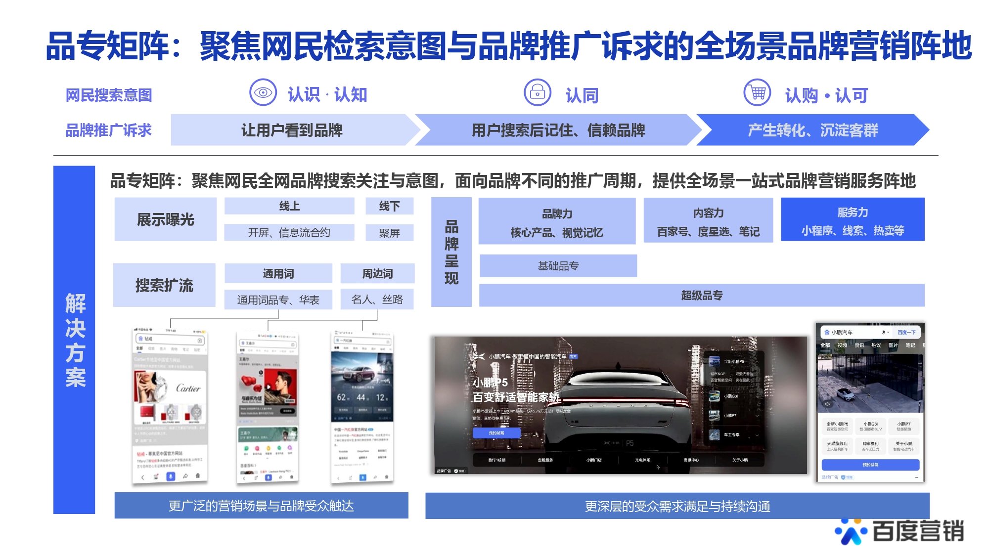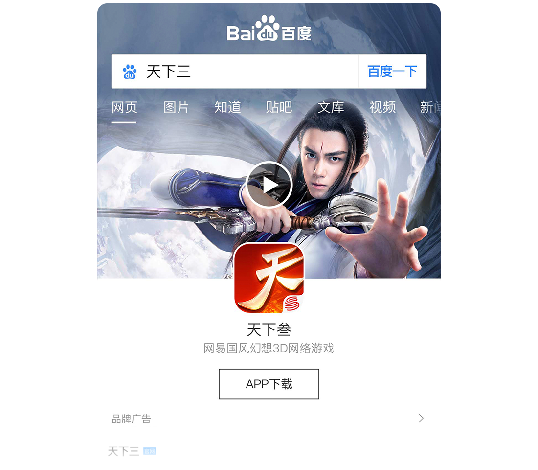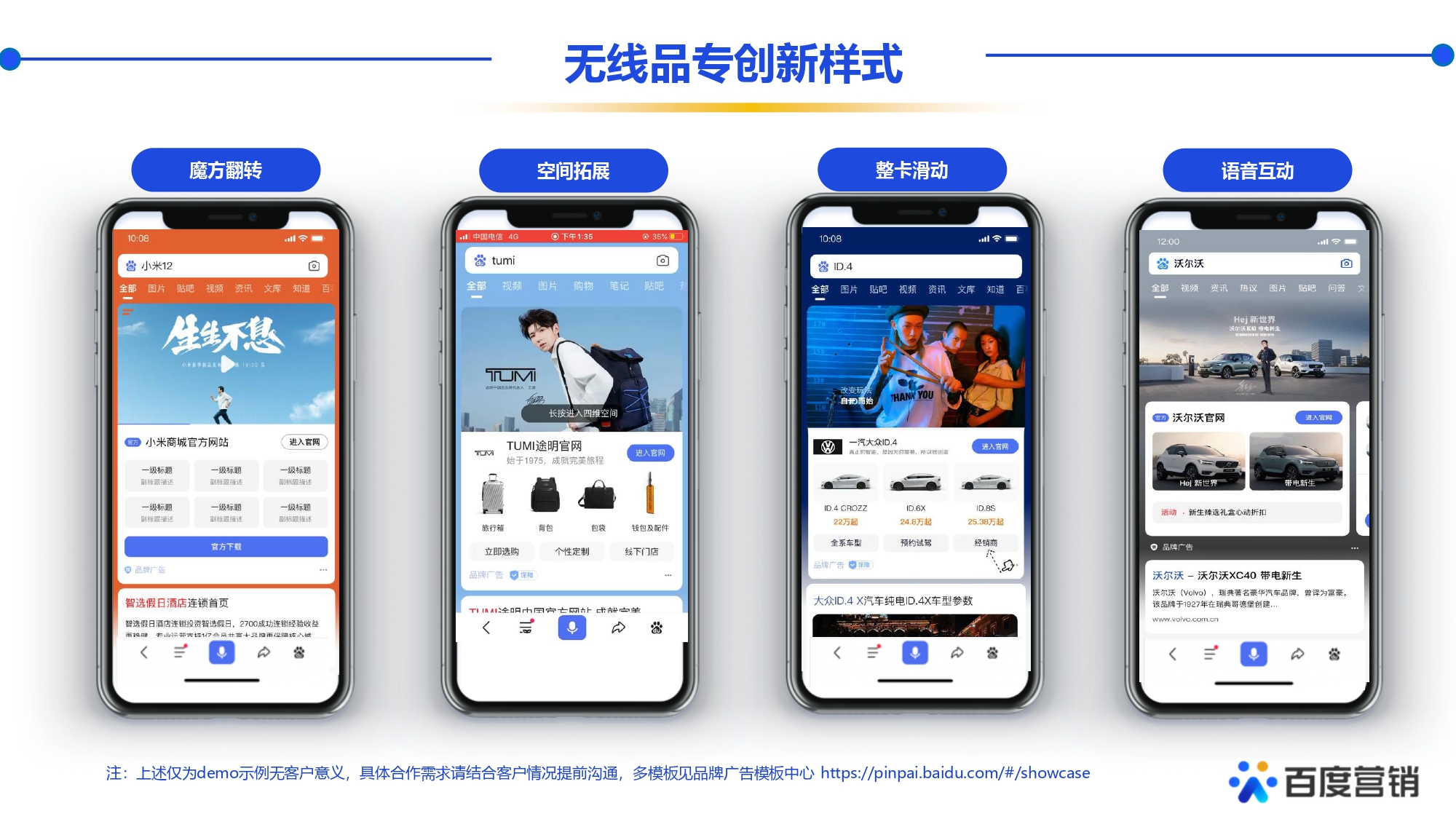 品牌展示曝光產品,以百度最海量的通用詞搜索資源為媒介,以創(chuàng)新的樣式和視覺交互吸引品牌認知階段的搜索用戶,加深用戶對客戶品牌的第一印象,進而引導用戶形成對品牌的好感和忠誠度。