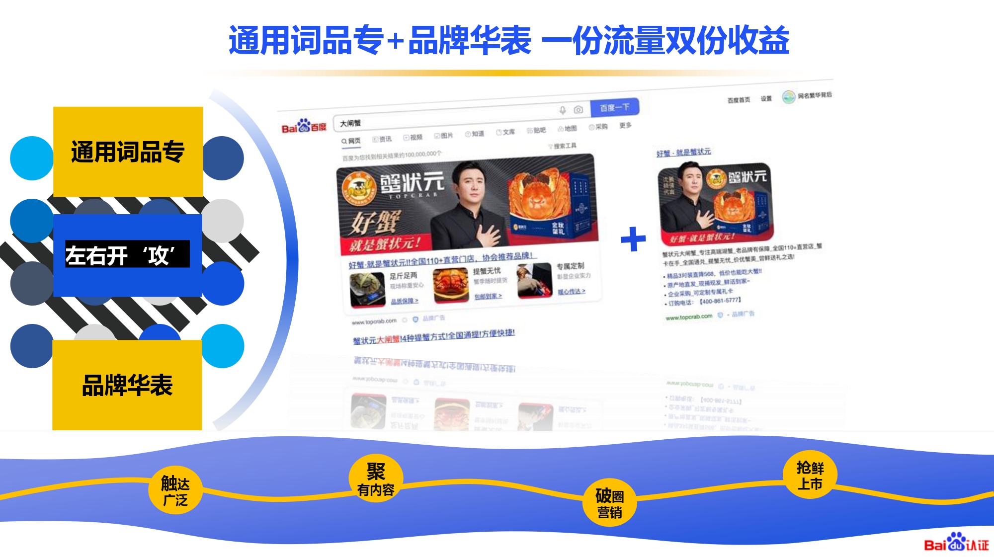 百度品牌專區(qū),位于百度搜索結果首位,以超大黃金首屏展示位置,以文字...